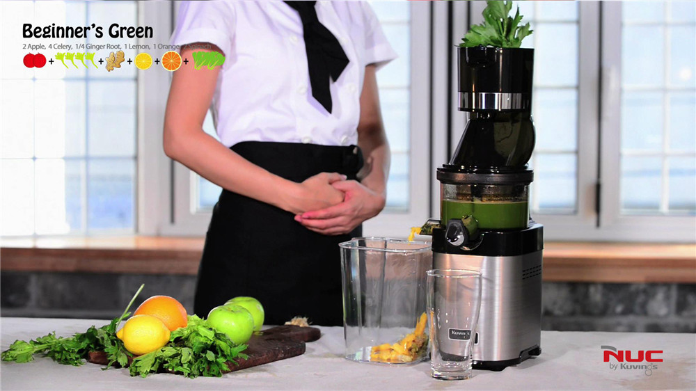 等待食材在原汁机中充分的混合均匀